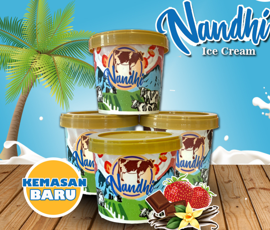 Ice Cream Nandhi merupakan olahan dari turunan susu Pasteurisasi. Ice cream ini memiliki 5 jenis rasa dengan ukuran 100mL.